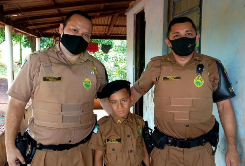 O menino disse ainda amar a profissão e revelou o sonho de se tornar policial |