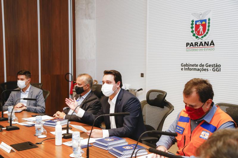 O governador Carlos Massa Ratinho Junior se reuniu nesta quinta-feira (10) com o ministro do Desenvolvimento Regional, Rogério Marinho, e o secretário nacional de Proteção e Defesa Civil, Alexandre Lucas Alves, no Palácio Iguaçu, para discutir a |