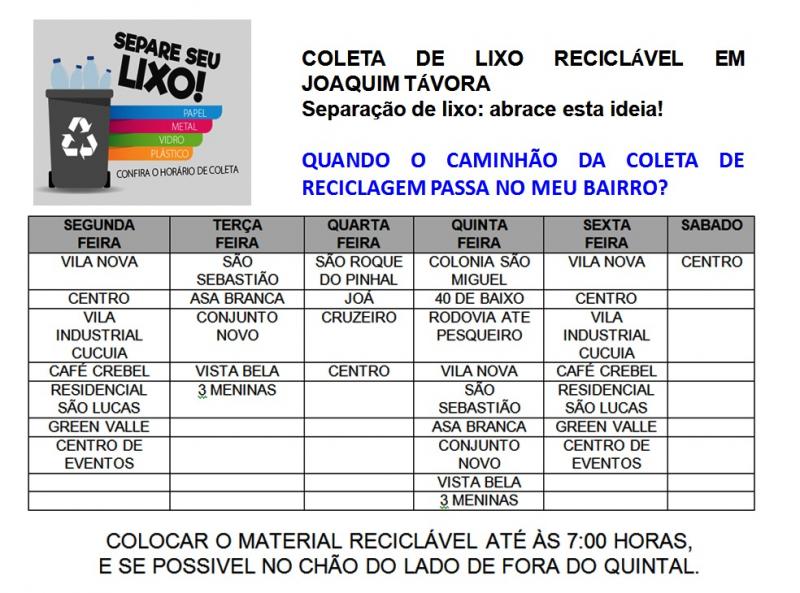 COLETA DE LIXO RECICLÁVEL EM JOAQUIM TÁVORA