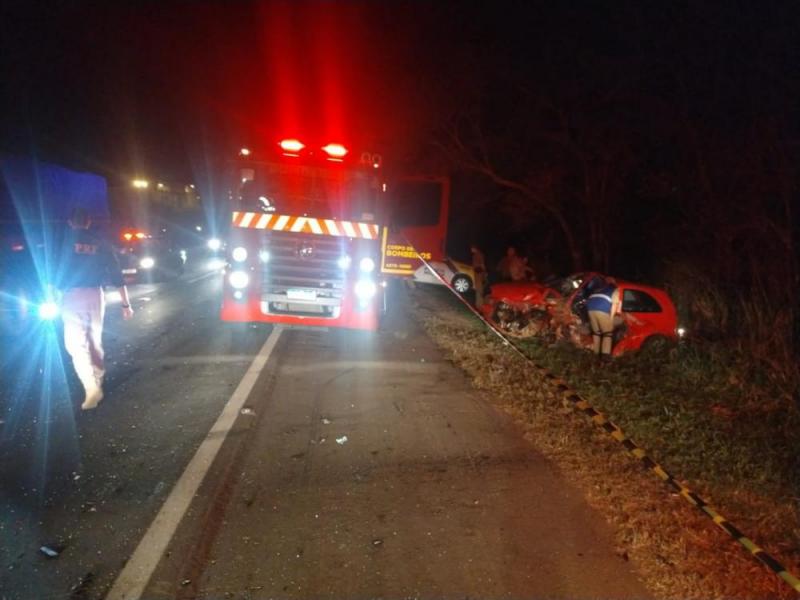 De acordo com a Polícia Rodoviária Estadual, um VW Gol e uma carreta colidiram frontalmente km 259, por volta das 18h30.