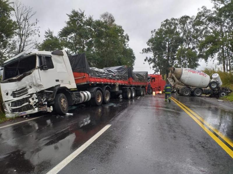 Um motorista de 42 anos saiu ileso de grave acidente envolvendo dois caminhões na manhã desta segunda-feira (17), na PR-092, em Siqueira Campos.