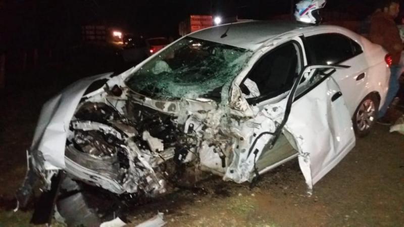 Um grave acidente envolvendo um carro e um caminhão deixou uma pessoa ferida e ambos os veículos destruídos no início da noite deste sábado (11), na PR-218, em Joaquim Távora.