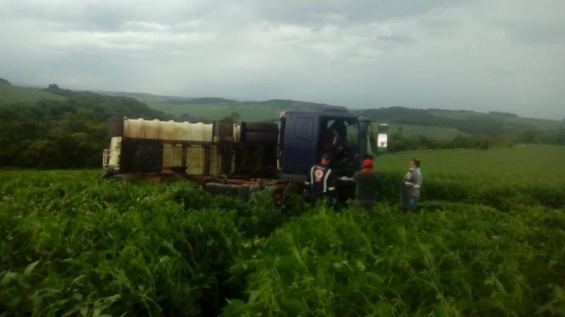 Um caminhão com placas de Cascavel/PR, carregado com abacaxi, tombou no início da tarde desta quarta-feira (29) no pátio da Polícia Rodoviária Federal (PRF), na BR-153, em Santo Antônio da Platina.