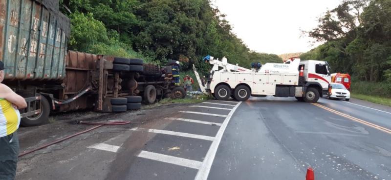Um motorista ficou preso por cerca de duas horas nas ferragens da cabine da carreta que dirigia, na tarde de segunda-feira (23), na curva do Ubá, na BR-153, trecho entre Santo Antônio da Platina e Jacarezinho.