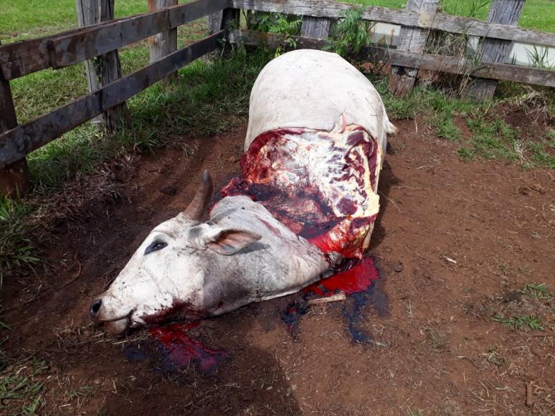Mais um pecuarista foi vítima de ‘ladrões de gado’, em Santo Antônio da Platina. Desta vez no sítio Santa Cruz, no bairro 100 Alqueires. Os criminosos invadiram a propriedade durante a madrugada desta sexta-feira (3) e abateram um touro nelore pesando 25 |