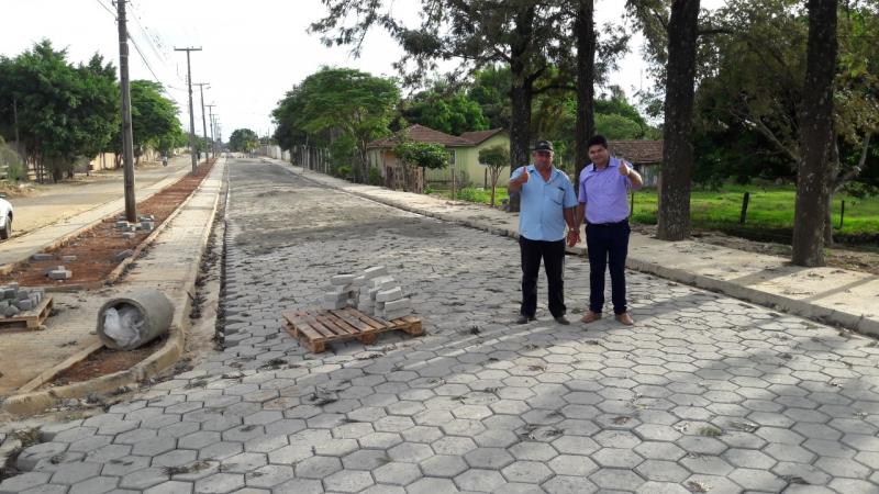 As obras que estão sendo realizadas na Avenida José Afonso em Conselheiro Mairinck continuam a todo vapor. A pavimentação com blocos sextavados e a construção de uma pista caminhada seguem o cronograma de execução. O prefeito Alex Sandro |
