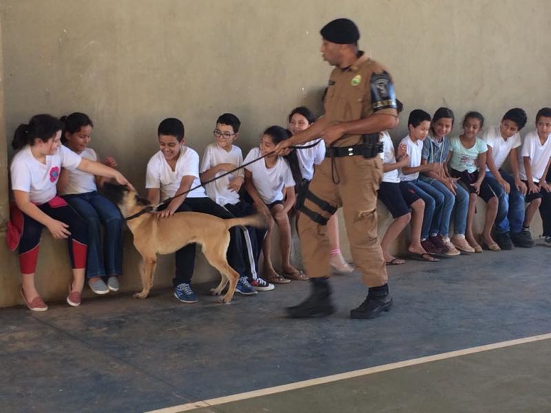 Na tarde desta segunda-feira (20/08), alunos do terceiro e quarto ano da Escola Municipal de Ensino Fundamental Professora Ruth Pimentel, de Jacarezinho/PR, visitaram a sede do 2º BPM e assistiram a uma apresentação do Canil da Unidade,