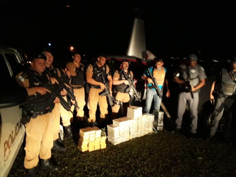 Um helicóptero que transportava mais de 140 kg de drogas precisou fazer um pouso forçado por falta de combustível na noite desta segunda-feira (11), no Estádio Municipal João Pereira Lima, em Cambará.
