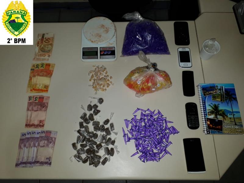 Policiais militares prenderam na noite deste sábado (2), dois rapazes acusados de tráfico de drogas, em Siqueira Campos.