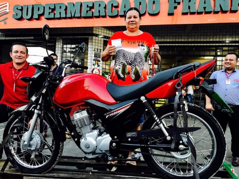 Vanda Galvão dos Santos (fotos), ganhou no final da tarde deste sábado (16), uma moto Honda 0 KM da Promoção Sucos Trink/Bolacha Cartoon e Supermercado e Casa de Carnes Franfort.