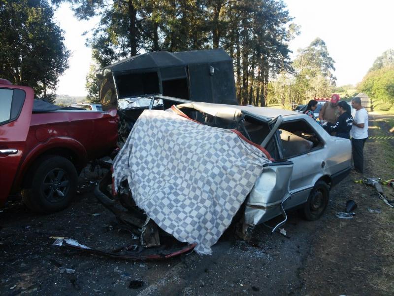 Três pessoas morreram e uma ficou ferida em um grave acidente na tarde deste domingo, 23, na PR-272, no trecho entre Pinhãlao e Japira.De acordo com informações do Bombeiro Comunitário de Ibaiti, uma Mitsubishi L200 Triton (placas de Ibaiti) e um Fiat Prêmio |