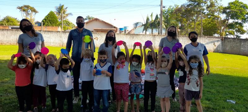 O prefeito Municipal Reginaldo Vilela, acompanhado da Secretária Municipal de educação Luciana Vieira Rodrigues e das coordenadoras Fernanda dos Santos Gonçalves e Niélle Marques Senhorini, visitaram as escolas do município para entrega dos presentes em |