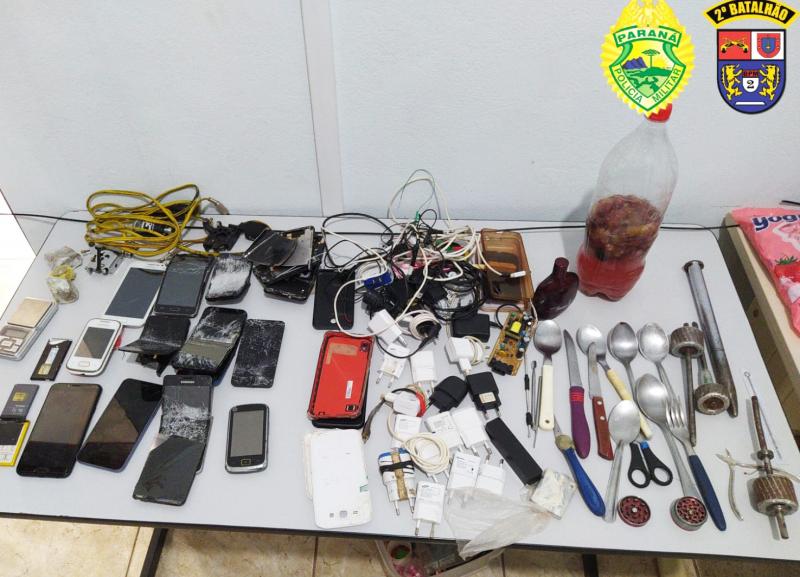 Revista rigorosa nas celas e pertences dos presos entre 15 e 16h30m desta terça-feira, dia dez, na Cadeia Pública de Joaquim Távora encontrou diversos objetos, aparelhos celulares e drogas (maconha).