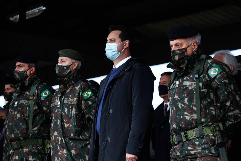 O governador Carlos Massa Ratinho Junior participou nesta quarta-feira (28), no Forte do Pinheirinho, em Curitiba, da cerimônia de troca de comando da 5ª Divisão do Exército (5ª DE). Depois de dois anos à frente da Divisão, que atende os estados do |