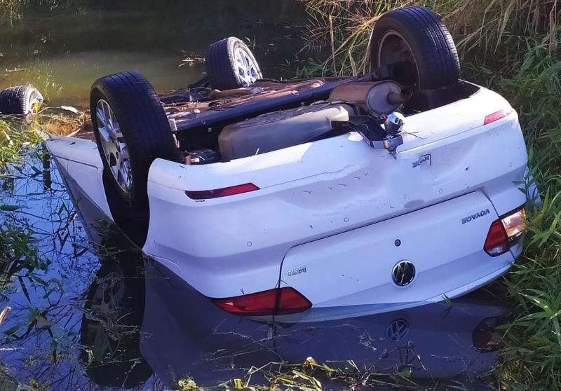Um VW/Voyage (placas de Nova Fátima) conduzido por uma mulher de 36 anos transitava pela PR-435, sentido Entroncamento PR 272/Ibaiti, e ao chegar no KM 14 perdeu o controle, saiu da pista e capotou num riacho(fotos). O acidente ocorreu às 7h15m desta quarta-feira, dia 21, em |
